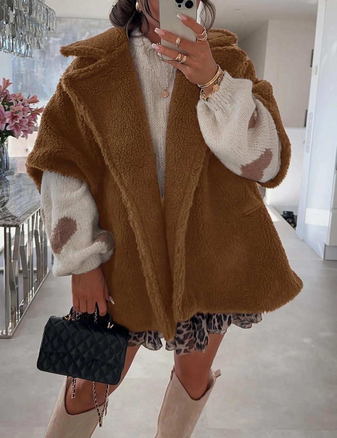 Be the first to review “Omoone Teddy Fuzzy Fleece Coats for Women 2025 Oversized Cap Sleeve Faux Fur Winter Sherpa Vest Jacket with Pockets(Caramel)” Cancel reply