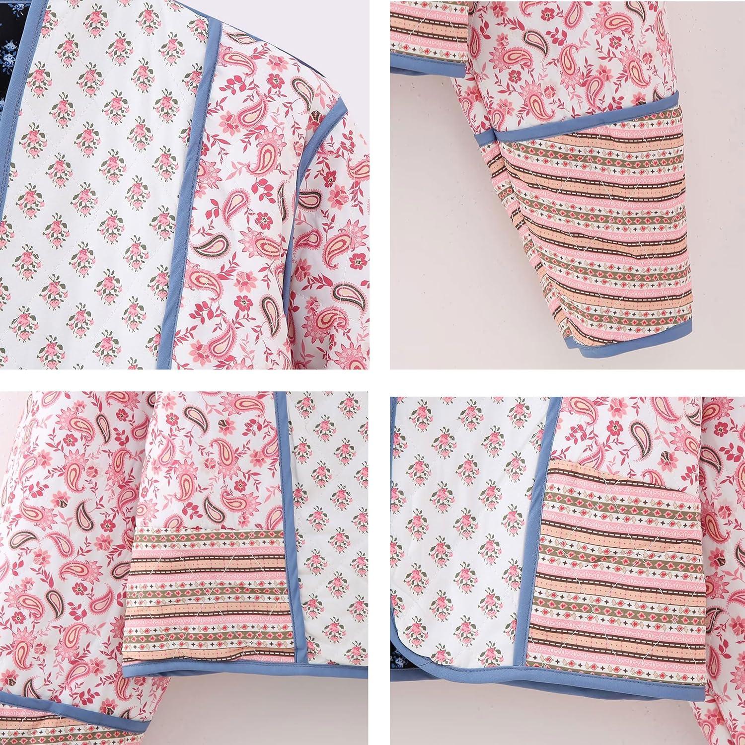 Omoone Women’s Cropped Floral Reversible Quilted Jacket Cardigan Printed Lightweight Open Front Padded Puffer Coat(Pink)